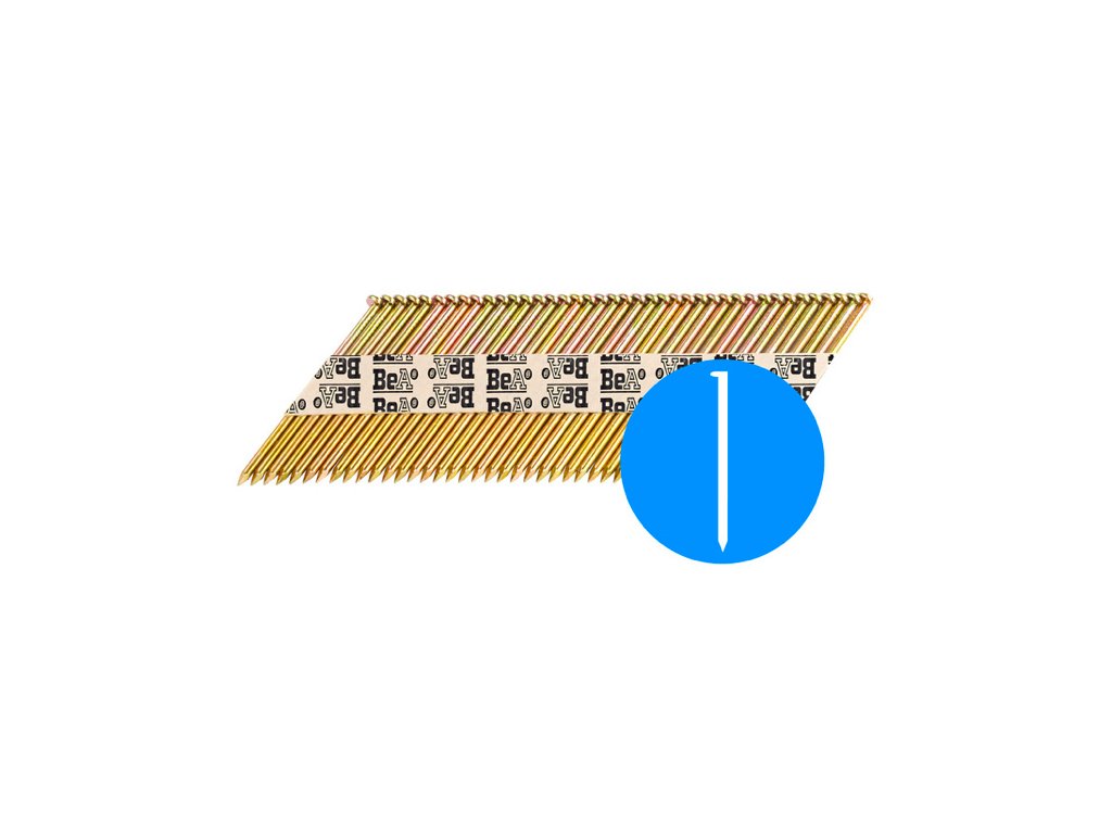Nastřelovací hřebíky na kontrukce, střešní latě a dřevostavby se sklonem 34 stupňů v provedení ring neboli konvexní.