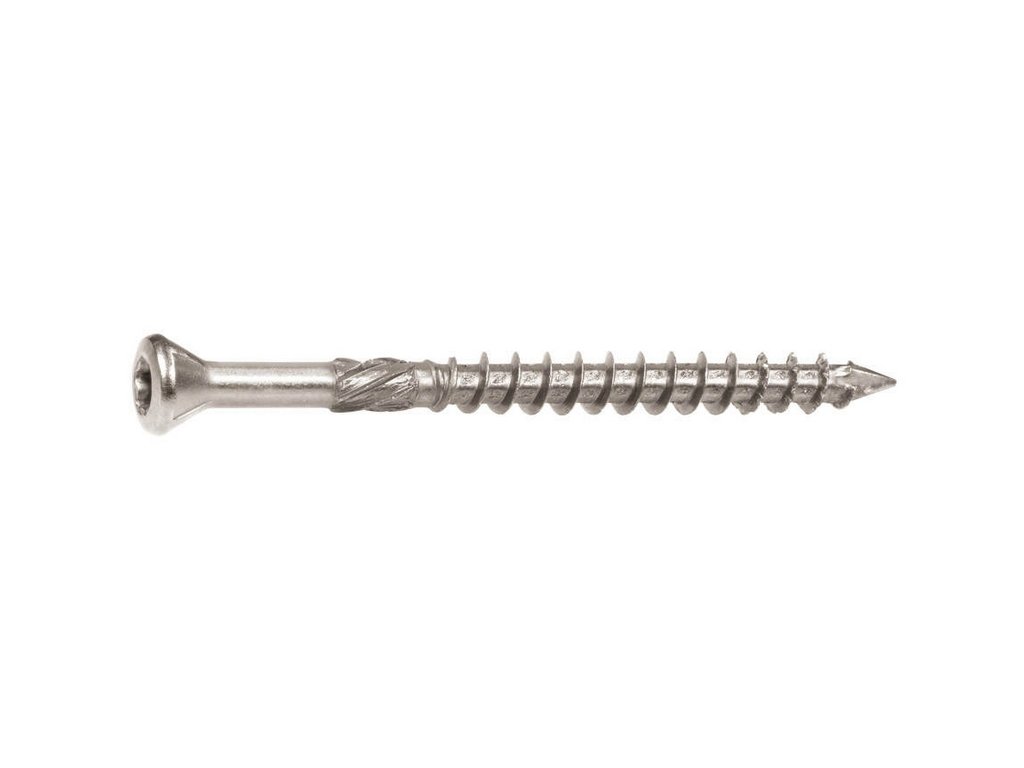 Nerezové vruty do exotických dřevin pro terasy, fasády, obklady Tyto vruty jsou určeny pro spojování prvků terasových konstrukcí či dřevěných podlah a to jak pro montáž viditelnou, tak s pomocí speciálních nástrojů i pro montáž skrytou. Vhodné do interiéru i exteriéru.