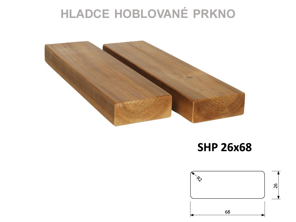 ThermoWood® profily jsou označovány jako SHP. Jsou ze všech čtyř stran hladce hoblované a mají tepelnou úpravu Thermo-D.