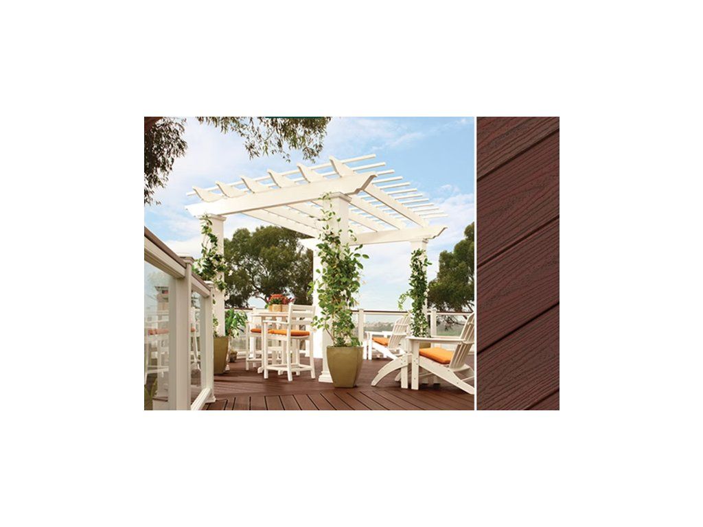 Odstín Lava Rock s bohatými červeno-černými podtóny připomíná luxusní červené dřevo. Díky své přirozené barevné vitalitě a realistickému vzoru dřevní kresby působí terasa velmi autenticky a elegantně.